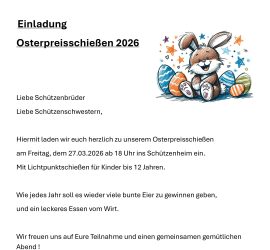 Der Bürgerschützenverein Schwerterheide lädt alle Mitglieder ein zur Frühjahrs-Generalversammlung 2026 in das Schützenheim bzw. die Gaststätte „Auf der Heide“ an der Heidestraße. Die Veranstaltung findet am Freitag, dem 13.März, statt. Beginn ist um 19.30 Uhr. Wesentliche Schwerpunkte des Abends werden die Besprechung der zentralen BSV-Veranstaltungen des Jahres 2026 sein, wie […]
