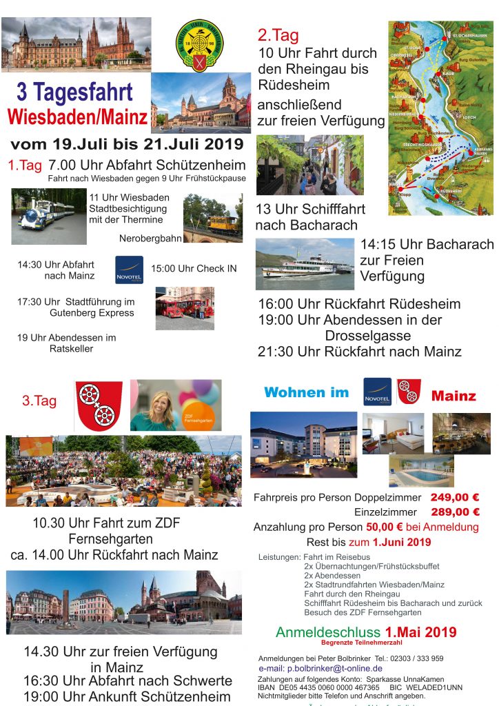 3-Tagesfahrt nach Wiesbaden/Mainz 19.07.2019 – 21.07.2019