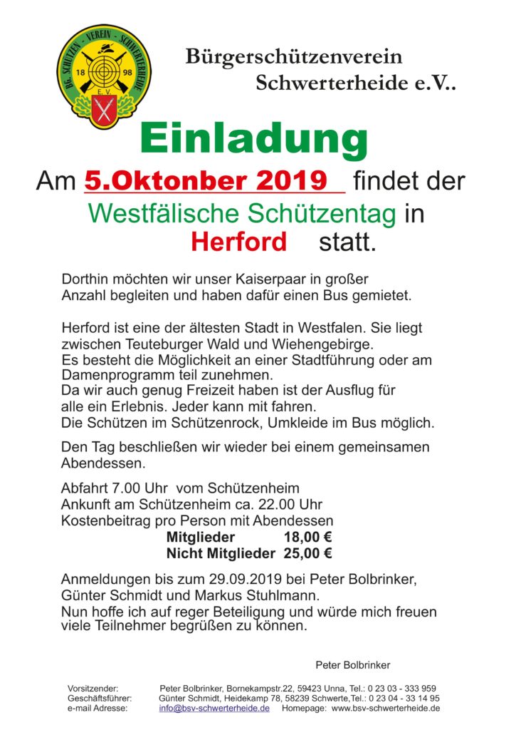 Fahrt zum 70. Westfälischen Schützentag in Herford 2019
